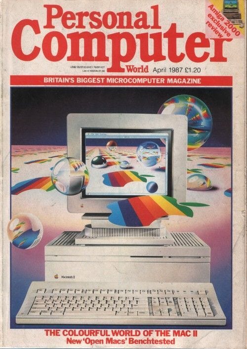 If you’re not familiar with part of my practice, I love collecting bits of design from the past to re-contextualize into something brand new. I enjoy the challenge of blending pre-existing ideas with new ones, merging past and present. Anyway, I’ve been knee deep in the Computer magazines, hyperfixating on how computers and new technology were advertised to us when they first appeared, and how that narrative has shifted over the decades. The introduction of personal computers felt engaging and curious, all very diverse and interesting. Ads for computers now feel more minimalist and stale, with marketing campaigns being reused and copied by competitors to appeal to consumers.