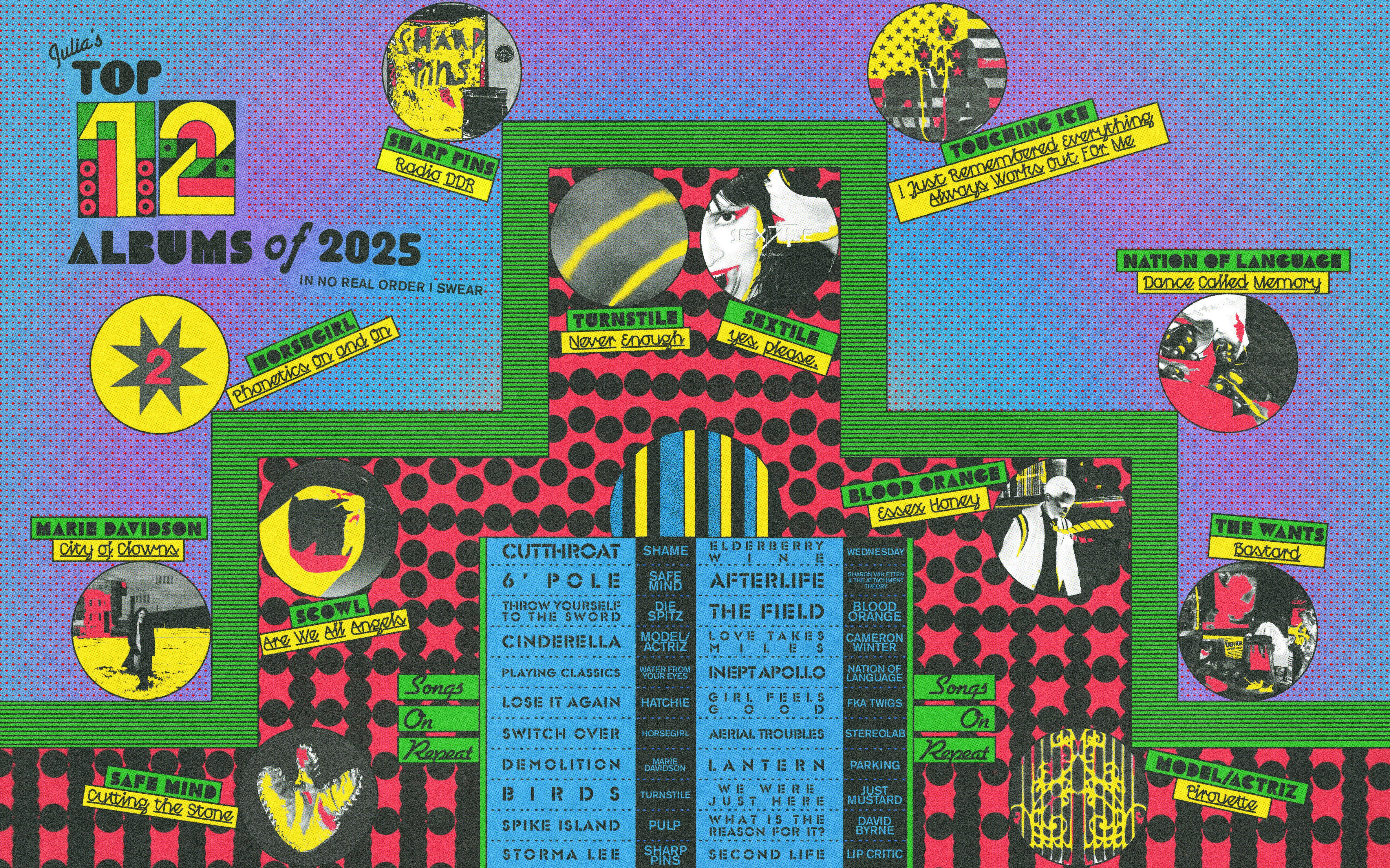 I spent the entire last half of 2024 working on the artwork development for Scowl’s album Are We All Angels, which was released this past April (although it feels like a lifetime ago at this point)…. the artwork was so fun to create, and seeing the visuals come to life in various marketing material for record stores, performances on late night television, and on tour, was so rewarding.
