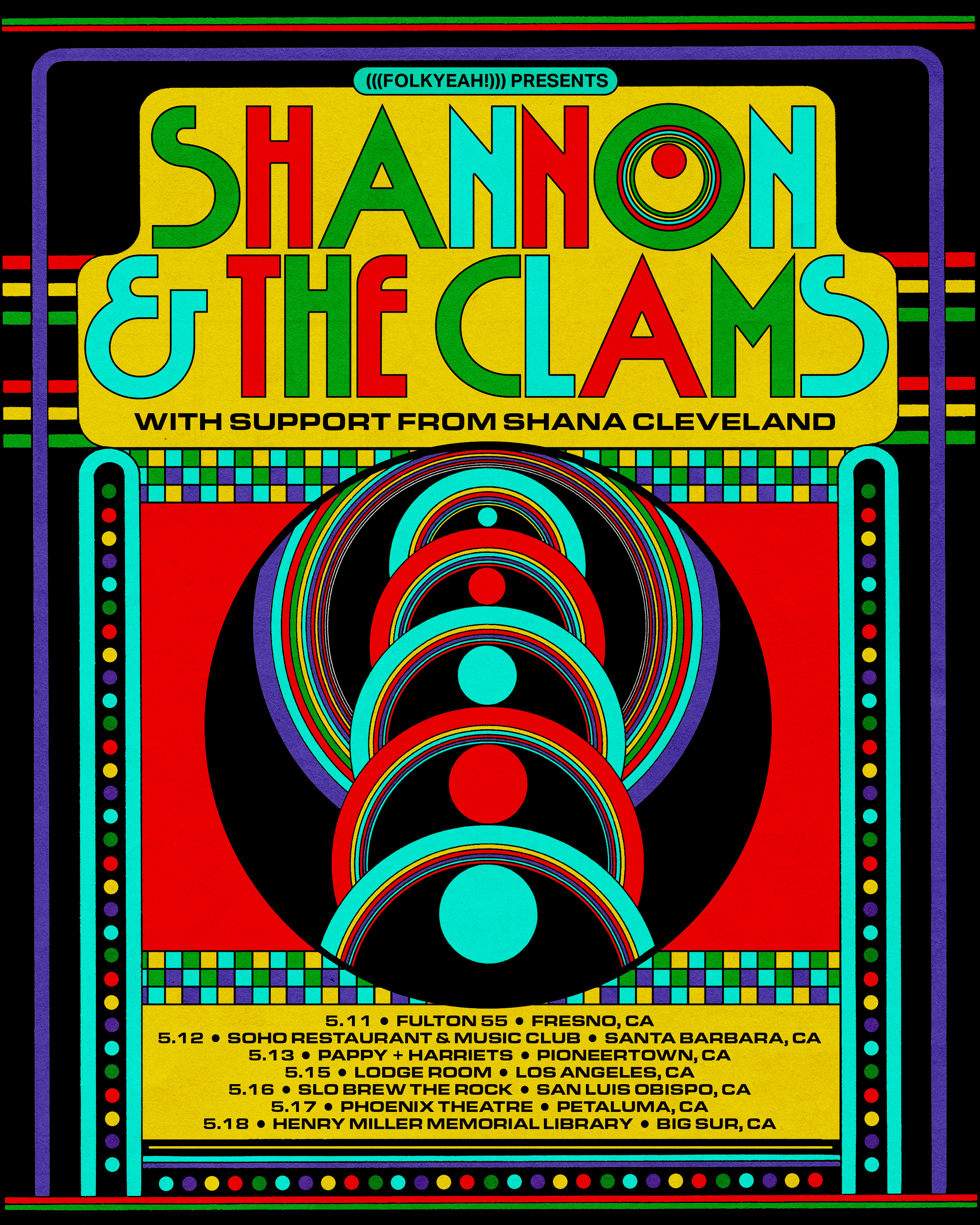 This month I had the privilege of working on another acid house/rave flyer for faves Sextile, a tour poster for Shannon & The Clams, and a co-headline tour poster for My Morning Jacket & Fleet Foxes.